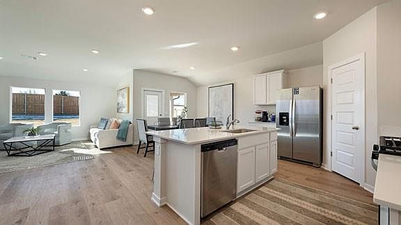 The Cali plan is a single-story, 1,796 square feet, 4 bedroom, and 2 full baths. The home features an open concept with a large central family room and kitchen. The kitchen has beautiful features that include Whirlpool Stainless Steel appliances, a large walk-in pantry, and a gas range, and quartz countertops and a large kitchen island! The bedroom one suite is in the back of the house for complete privacy. Enjoy a spacious bedroom one ensuite which features a spacious bathroom and walk-in closet Additional features include a tankless hot water system ensures you'll always have hot water when needed. “Home is Connected” smart home features which include a camera doorbell, Kwikset keypad lock, smart switch, and Alexa Dot for voice control. The exterior features include full sod yard with a landscape package in the front, and a covered patio!
