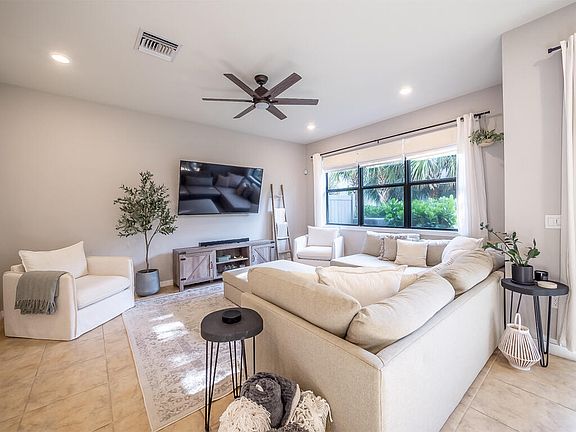 Stunning 3 bedroom, 2.5 bathroom, 2 car garage townhome by Divosta in The Fields. This upscale community is zoned for all ''A'' rated schools including the new Dr. Joaquin Garcia High School and the FL turnpike. It features a spacious and stylish layout with tile flooring downstairs, neutral colors, and knockdown ceilings and walls that add a modern touch. Admire the board and batten entryway and upgradded impact glass front door! The upstairs area is carpeted for comfort, complete with a cozy loft and ceiling fans for added convenience. The kitchen offers white cabinetry, granite countertops, stainless steel appliances, touchless upgraded faucet, and a convenient snack bar. The space is beautifully lit with pendant and recessed lighting and offers ample storage with a pantry. Upstairs, you will find all 3 bedrooms. A large master features a stylish feature wall, a spacious walk-in closet, and an ensuite bathroom, with a walk-in shower, a dual sink vanity with granite countertops, and wooden cabinetry. 3 of the bedrooms have beautiful board and batten details. The home offers a complete set hurricane impact windows and doors. Enjoy the outdoors from your relaxing open patio. A fully fenced yard adds peace of mind. The Fields has a plethora of resort style amenities, including 2 state of the art clubhouses, luxurious pools, basketball courts, tennis courts, state of the art fitness centers, gathering rooms with full kitchen, playgrounds and much more! You don't just buy the home, you truly get a great community. Don't delay and schedule your showing today!