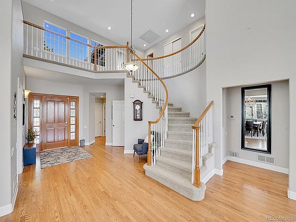 8312 South Peninsula Drive is a rare gem—one of only four detached patio homes, just steps from McLellan Reservoir in the coveted Peninsula community! A covered front porch welcomes you, while a spacious driveway provides ample guest parking in addition to the attached two-car garage. Step inside the grand foyer, where a sweeping staircase and soaring ceilings set the tone for this exquisite space. Designed for effortless entertaining, the open floorplan boasts abundant natural light from generous southern exposure, gleaming hardwood flooring, and elegant finishes throughout. The family room features a stunning traditional gas fireplace, built-in sound system, and direct access to the wraparound deck, complete with a retractable awning for year-round comfort. The eat-in kitchen is a chef’s dream, offering crisp white cabinetry with stainless steel appliances featuring a double oven, a 4-burner gas cooktop, granite countertops with ornamented backsplash in sandy tones, all paired with a stunning sunlit breakfast nook for relaxing mornings. The main-floor primary suite is a serene retreat, featuring a bay window, expansive storage and a luxurious 5-piece bath with a spa-like soaking tub. Upstairs, a generous second primary bedroom with an ensuite bath is perfect for guests, and an airy loft makes an ideal office space. The finished basement offers abundant additional living space, featuring a large rec room, workshop, additional bedroom, and a full bath—with walkout access to a covered lower-level patio surrounded by lush landscaping. Newer carpet, paint, whole-house water filter (1-year) are sure to make you feel right at home! HOA-covered exterior maintenance, landscaping, and snow removal, this true lock-and-leave home offers peace of mind year-round with a peaceful backdrop of McLellan Reservoir. Conveniently located near Chatfield State Park and C-470, this home combines elegance, comfort, and unbeatable location. Don’t miss this rare Peninsula opportunity!