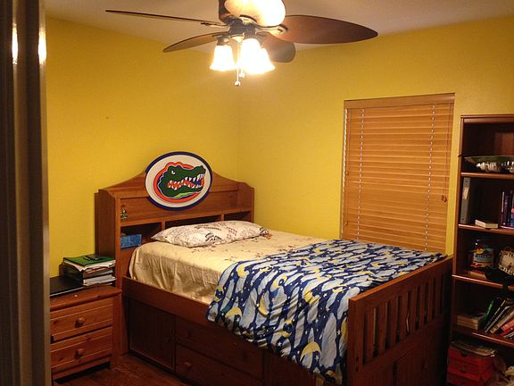 Available now, new privacy fence being installed! Beautiful 3 bedroom, 2 bathroom home For Rent in Mentone. Open floor plan with vaulted ceilings in living room give this home a spacious feel. Wood floors throughout living areas and bedrooms, NO CARPET! Bright and airy kitchen includes a breakfast bar, pantry and eat-in breakfast nook separate from dedicated dining area. Large master suite has tray ceiling, walk-in closet with dual-sink en suite bathroom. Open the sliding glass doors to enjoy your screened-porch overlooking huge backyard. Enjoy all the neighborhood amenities, including community pool, playground, basketball and tennis courts. Located just minutes from Celebration Pointe, UF Health and North Florida Regional Medical Center. Call Lindsay at for a tour today! Owner is a licensed Realtor. First/last month's rent and security deposit due at signing. 2 pet maximum.
