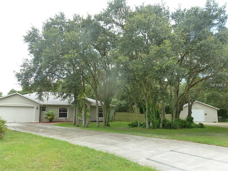 AWC - Taking Backup Offers Short Sale. Privacy abounds. If you are looking for a nice home on a quiet street with room to move around then look no further. This affordable North Port 3BR/2BA/2CG pool home sits on almost a acre of land and has a detached building that is currently being used as a recording studio and can also be used as a private office, air conditioned workshop, storage for small business (no plumbing currently in the building) or can be converted to a 2 car air conditioned garage. Popular Holiday Builder's Morro Bay model home was lovingly built by the owner who used to work for Holiday Builders and a lot of extras went into building this home. Large home has formal living area and the kitchen is open to the large family room with high ceilings makes this home feel much larger than it is. Kitchen with large island has solid surface counters and lots of storage space and views of the pool area. Property is partially fenced with privacy fencing. Short drive to area beaches, 2 golf course and minutes away from the Coco Plum Shoppes. This property is a must see.