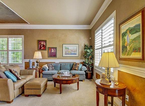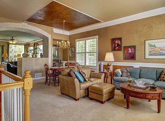 Lovely ranch at end of cul-de-sac with 3 bedrooms/den/2 bathrooms. Open floorplan with 10' ceilings, custom paint and crown molding. Large great room has eat in kitchen and leads to walk out stone patio. Fabulousback yard with lush landscaping that backs to open space. New exterior paint 2015, and new roof in 2014.