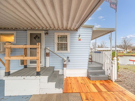Nicely updated mobile on the water with year round occupancy! This mobile has had (over the last 10 years) updated siding, metal roof, gas furnace, kitchen, Polaris windows, hot water heater, doors/sliding door, plumbing and wood laminate flooring. Mobile also has washer/dryer hookup in the 2nd bedroom. This quiet park has waterfront views, nice porch and patio areas and a shed for storage. Come take a peek at this one today!!