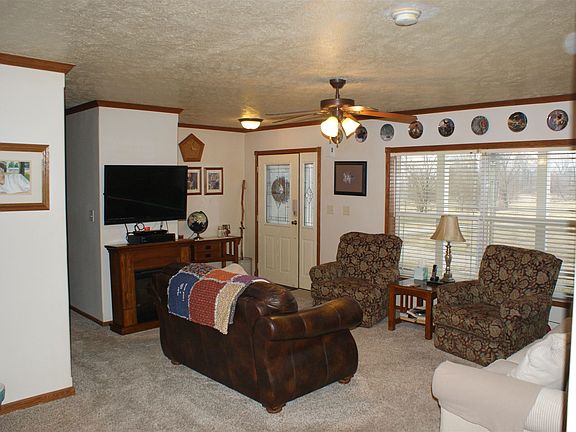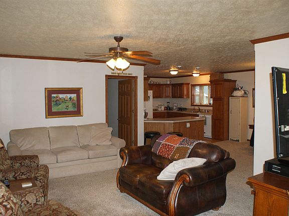 Unique find just outside Russiaville in Western Schools. This manufactured home has 3 Bedroom, 2 Full Baths, nice kitchen with walk in pantry and large garden tub with jacuzzi jets in the master bathroom. Outside features approximately 9.44 partially wooded acres/tree line with a stocked pond. Also features very nice detached 3 car garage with a workshop area (Size 28 x60) and a (24 x24) pole barn. A must see that will not last long with a beautiful county view!