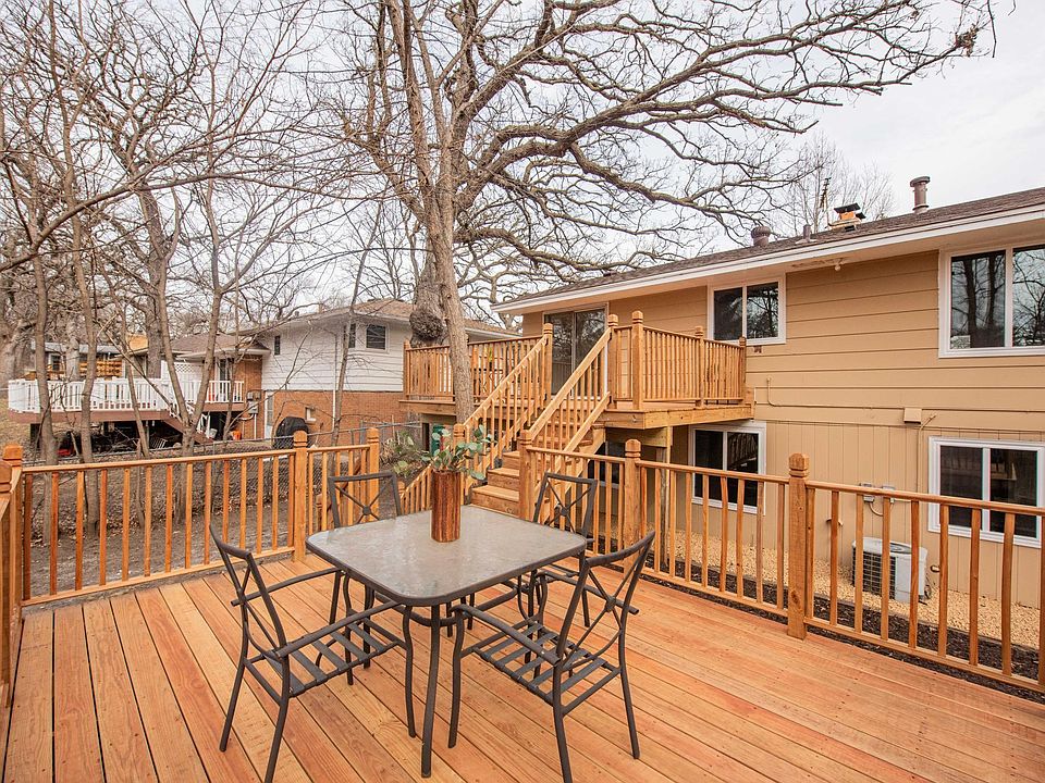 Step inside and be greeted by the inviting ambiance of hardwood and ceramic floors that flow seamlessly throughout the home. With two cozy wood-burning fireplaces, one in the living room and another in the family room, you'll look forward to evenings spent curled up with loved ones, creating memories to last a lifetime. The heart of the home is undoubtedly the spacious dining room, where gatherings with family and friends are sure to be unforgettable. From here, step onto the fantastic newly built multi-level deck, where you can bask in the beauty of nature surrounded by tall trees in the fully fenced in backyard overlooking the tranquil pond. Whether you're hosting summer barbecues or enjoying quiet mornings with a cup of coffee, this outdoor oasis is sure to delight.
