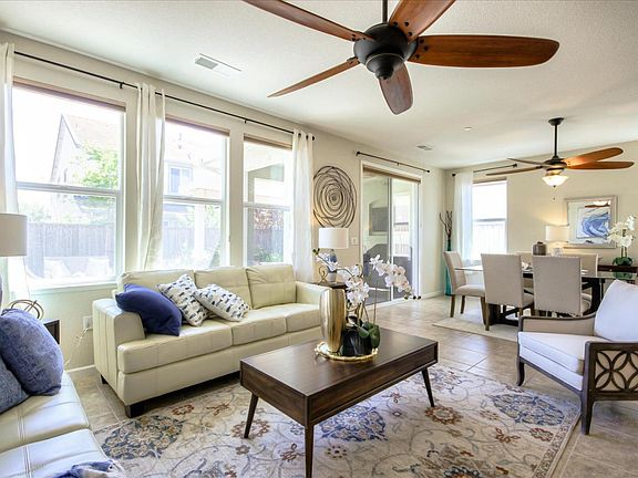 Immaculate single story home in the beautiful gated Lakes community. This gorgeous property has it all done all you have to do is move in. Offering three spacious bedrooms, two bathrooms, in-door laundry room, plantation shutters and tile floors throughout. The layout is an Entertainers dream with kitchen overlooking living room, dining area and outdoor space. Inside the kitchen you will find a spacious island with counter seating, stainless steel appliances, walk in pantry and plenty of cabinet space. Spacious master bedroom with walk in closet and large master bathroom. Enjoy the backyard in the expansive California Room with custom tile, ceiling fan, fireplace and pre wiring for your outdoor big screen TV. Low maintenance yard with stamped concrete patio and artificial grass. Save on utilities with solar and owned water softener system. You do not want to miss on this great turn key property!