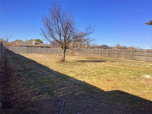 Beautiful home located just minutes from Tinker in the Moore school district. Home is on a cul-de-sac and has a large backyard with a firepit and a pergola. HOA includes a neighborhood pool. Living has a corner brick fireplace with gas logs and sliding glass door that opens to the patio. Kitchen has a breakfast bar and a built in microwave over the stove. Office is located at the front of the home. Master has double vanities, a jetted tub, a step in shower, and an Australian walk around closet with built in shelves. The two secondary bedrooms both have nice size closets. Hall bath has a tub/shower combo.