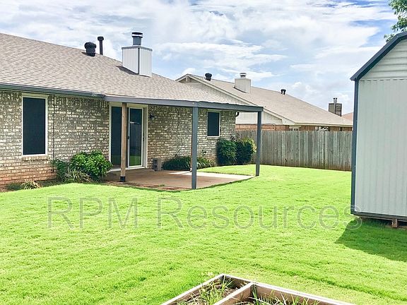 How would you like to live in cute 3 Bed 2 Bath with one of the best locations? Then we have just the home for you. This home is as good as it gets. Open kitchen, family, dining room with a floor to ceiling brick fireplace.On one side of the house, The master has tall cathedral ceilings and a on suite bathroom and large walk in closet. On the other side of the house you have two guest bedrooms equal in size separated by a full size bathroom. Out back, the charm continues with a great sized yard equipped with a storage shed. There is even a place for a garden Not to mention you have the sense of security from that oklahoma weather with your in ground storm shelter located inside the two car garage. It doesn't get any better then this! Please give us a call before it is to late and you miss out. Amenities: pets per owner approval