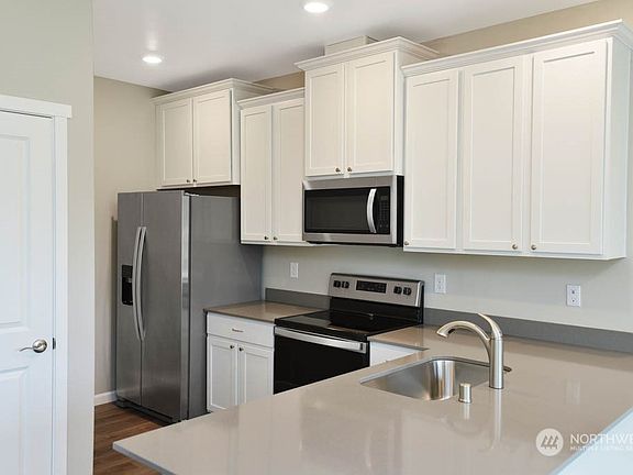 Now available in Arlington - the Alki floor plan! This stunning, brand new townhome features an open entertaining area throughout the living room & dining area. The kitchen is upgraded with quartz counters, 42” cabinets, & a full set of stainless steel Whirlpool® appliances. Luxury plank flooring, two-tone paint & recessed LED lighting create a beautiful design. Upstairs, enjoy a private owner’s retreat with a dual-sink vanity & walk-in closet, plus two more bedrooms & a second full bathroom. A finished garage offers storage space & privacy. If you are working with a licensed broker, please complete the Prospect Registration Agreement (*Site Registration Policy #4898) & submit prior to your first visit to the Gilman Walk Information Center.