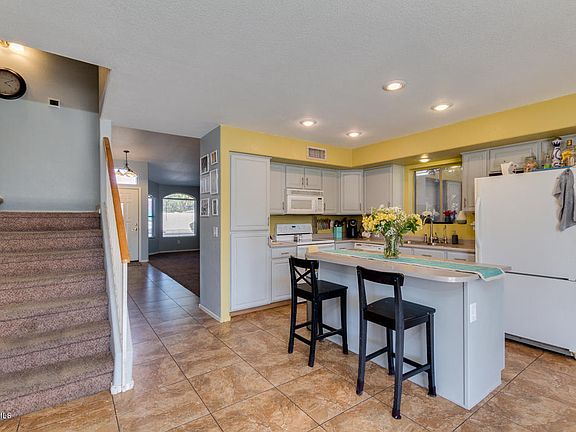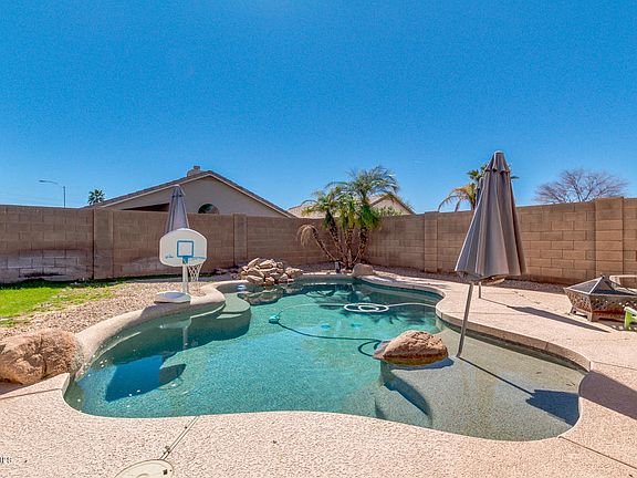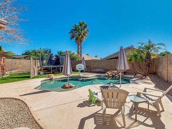Looking for a new place to call home? You've found it! This 4 bed, 2.5 bath property boasts desert front landscaping, a perfect entertaining backyard, a 2 car garage, and much more! Inside you'll find large dining and living areas with lightened paint throughout, and an elegant kitchen equipped with ample cabinet and counter space, matching appliances, and a charming island complete with a breakfast bar. The grandiose master bedroom has vaulted ceilings, spacious walk-in closet, and full bath with double sinks, not to mention separate tub and shower. The expensive backyard includes a covered patio, grassy area, and a sparkling blue pool perfect for the hot summer days! The good ones never last, don't waste any time and schedule a showing today!