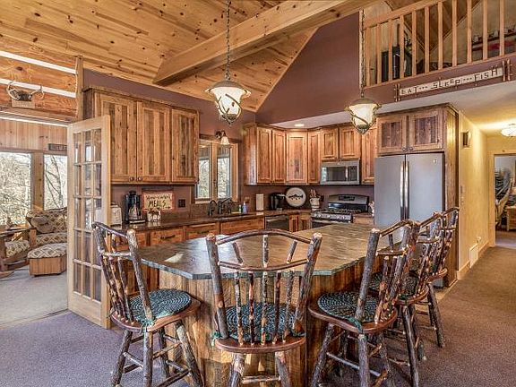 Musky Bay Lodge on Tomahawk Lake. Hop in the Gator & take the switchback path to the lagoon, dry boathouse & 175' sand frtg. This elegant property features open concept design, exceptional quality & attention to detail throughout. Impressive entry vestibule leads into the main living area w/ views on 3 sides, showcasing the gorgeous surroundings. Outstanding features include Barnwood kitchen w/ sueded granite countertops; great room w/ cathedral ceiling, lined half-timber chinked walls & a 2-story fieldstone fireplace. Includes 5 bdrms - stunning L-shaped master suite. The large master bath has a whirlpool tub w/ separate shower & walk-in closet. The walkout lower level includes 2 bdrms, full bath, family room & theater w/ surround sound. Outside you will find a 4 season lakeside porch with wrap-around deck, leading to the boathouse and 2 car att'd garage. The dining room opens to a stairway to the private "Eagles Nest', which includes lounge area, 2 guest bdrms & full bathroom.