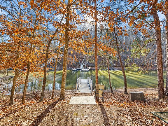 Nestled on a cozy 1.57-acre waterfront, this home is a perfect retreat. Providing everything you need to enjoy life at the lake. A great floor plan, with a primary bedroom on the main level, a study, and living areas with vaulted ceilings and perfect window placement to allow all the natural light and warmth. With 2 bedrooms and an additional bath upstairs. The property includes a detached garage that is heated, and powered and has tall doors perfect for getting all those toys/vehicles in and out. Needing more storage space? Check out the back of the home outside entry into another small storage area. Enjoy days sitting in the hammock or down by the water on your dock and the evenings up on the trex decking your choice of screened-in or open-air. The whole house generator provides peace of mind during power outages and the recently replaced roof and HVACs make this a perfect opportunity to own a piece of the lake with no stress of repair. Home warranty included