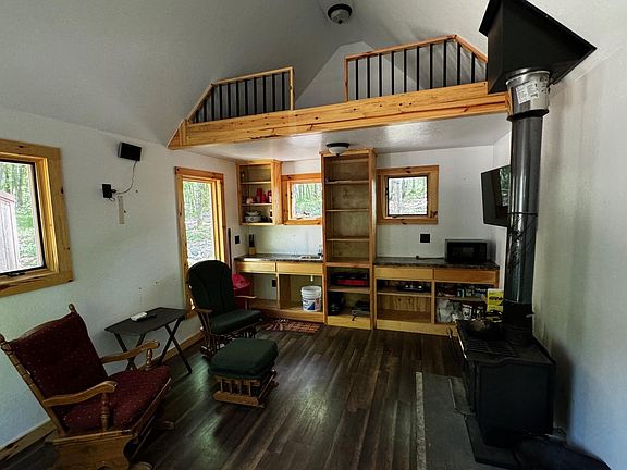 TINY HOUSE / Lake Tomahawk; This has been the tiny house for this family for three years, used as a hunting and hiking getaway, two 12 x 16 spaces, ( connected) gathering and kitchen area with wood stove one area, ( also a 12 x 5 loft mostly used for storage) and the 12 x 16 bunk room for sleeping, propane wall unit heaters, and fully wired with generator plug in for electric or set up some solar. Complete floor insulated roof and walls super efficient, No plumbing here, 4 x 8 insulated outside storage and used for bathroom, they used a composting camping portable toilet. building has propane heater for all the comforts of home. Could you add water? Sure, Septic? sure.. or just use as is. Thousands of acres of state land a few hundred yards away, North Two, South Two lakes, Wind pudding lake access just up the road on state land. Home base out your front door Snowmobiling, Hunting, fishing. Room for garage or build, way better than camping. Come take a look.