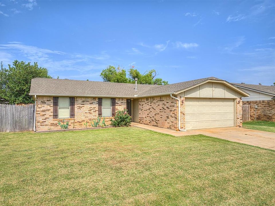 Looking for a move-in ready starter home under $200,000? Then this one's for you! This home offers a spacious living room with gorgeous wood look tile floors and a gas fireplace. The kitchen has lots of cabinets, a pantry and new garbage disposal. The primary bedroom has a nice sized closet and its own bathroom. You will also find an inviting covered patio in the back to enjoy your outdoor space, and built in workbenches in the garage, just waiting for you and your hobbies. This home is in a great location in the Moore School District, less than 5 minutes from the Heart Hospital South, 10 minutes from Tinker and Boeing and easy highway access to any part of the city. Don't miss your opportunity on this one!