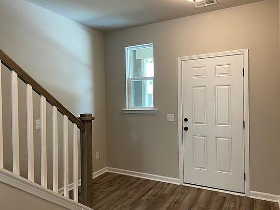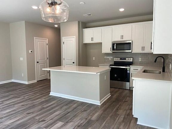 Welcome into a gracious foyer with wide plank LVP flooring and 9 foot ceilings in this striking townhome with Hardiplank exterior & open main living. Step back to find your inviting chef's kitchen with up to the minute styling including designer lighting, quartz counter tops & stainless appliances. Ample storage awaits in the 42'' upper cabinets w/matte black fixtures. Combined living & dining flows to back patio overlooking lawn w/ pond & fountain views. Convenient powder room nestled beneath stairs. Up the hardwood stairs find a generous primary suite w/ spa style standing shower, double vanities & sizeable walk-in closet. Laundry is smartly located in upper hall. Two additional bedrooms offer great spaces in the front as well as a generous full bath with tub. Single car attached garage