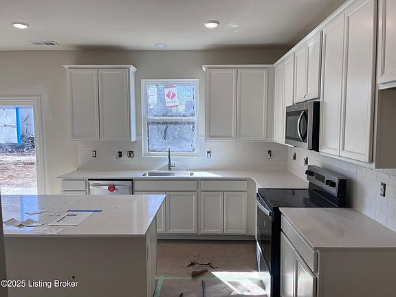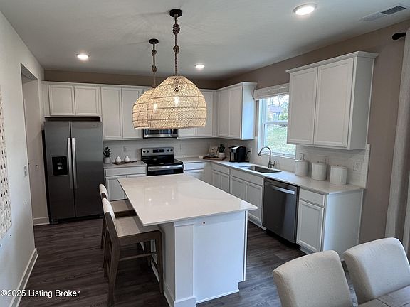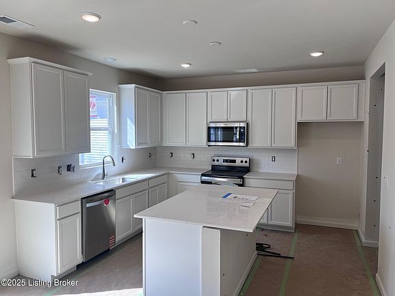 LIMITED TIME FINANCING INCENTIVES ON THIS BRAND-NEW MODERN HOME. Step inside the only Dayton available to 9ft ceilings illuminated by soaring LED lights, Quartz Countertops, Luxury Vinyl Plank Flooring and a Subway Tile Backsplash and Premium Modern Cabinets with Crown Molding. The open concept design is perfect for entertaining, making gatherings a breeze. Upstairs, a spacious loft awaits, ideal for a kids' retreat. With 4 bedrooms thoughtfully spaced for privacy. The primary suite boasts a walk-in closet fit for the most expansive wardrobe. The primary bathroom is a spa-like retreat with a tiled shower, premium comfort height cabinets, and a dual vanity. The perfect summer BBQ Backyard! Nestled in a quiet neighborhood with full Warranty, just minutes from Bardstown Road!