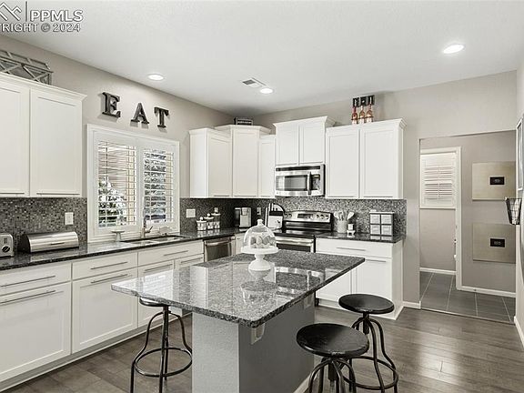 Welcome to a world of refined taste where every detail has been meticulously crafted to elevate your lifestyle. This impeccably designed home offers a perfect blend of elegance and modern convenience, boasting a plethora of upgrades that will exceed your expectations and located within the esteemed Banning Lewis Community. Banning Lewis offers a wide range of upscale amenities tailored to diverse needs and interests. From The Banning Lewis Ranch Academy to state-of-the-art recreation centers, Pickle Ball Courts, and luxurious swimming pools to meticulously landscaped parks and extensive trail systems, The Banning Lewis Community offers an unparalleled array of opportunities for learning, leisure, recreation, and relaxation. The main level features upgraded luxury vinyl plank flooring that not only adds a touch of contemporary style but also ensures easy maintenance for years to come. Prepare to be amazed by the gourmet kitchen, which is a chef's dream come true. White cabinets, granite countertops, stainless steel appliances, and a large pantry combine to create a space that is both beautiful and functional, offering ample storage and workspace for all your culinary endeavors. The main-level half bathroom is adorned with floor-to-ceiling mosaic tile, exuding opulence and charm. Upstairs, retreat to the lavish master bedroom complete with a spa-like en-suite bathroom, providing the ultimate sanctuary for relaxation and rejuvenation. Two additional bedrooms, offer plenty of space for family or guests, while a loft provides additional versatility to suit your lifestyle needs. Additional upgrades include new carpet, central air conditioning for optimal comfort year-round, a finished garage, and a xeriscaped yard for low-maintenance outdoor living.