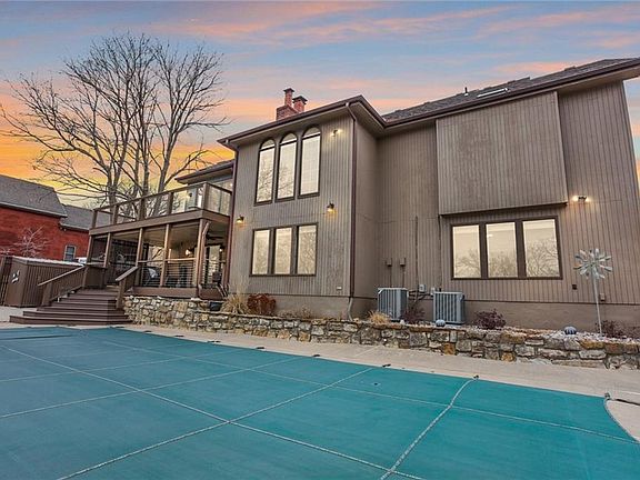 A rare gem! Easy Access and Convenient Location! Weatherby Lake!! This cozy home on a beautiful lot just inside the elite city of Weatherby Lake! Easy Access to Shopping and Entertainment. This large, Spacious home boasts: 5 spacious Bedrooms and 5 1/2 Bathrooms and an abundance of Living and Entertaining Space. The Main Level Master Bedroom has a Beautiful Private Sitting Room with Gas Fireplace, 2-Door Closet and Large Master Bathroom featuring a Vaulted Ceiling with Skylights; Large Bedrooms; Large Kitchen Eat-in with Slate Tile Flooring, Granite Counters, New Double Oven, Abundance of Cabinets, Modern Tile Backsplash, Large Glass Sliding Door with Center Pull Overlooking the New and Incredible Large Composite Deck with Modern Cable Railing; Massive Basement with Family Room, Wet Bar, Recreation Room, Dry Sauna with Two Level Seating, and Walkout to Patio. Lower Backyard Area Offers Concrete Tile Patio Surrounding the Inground Pool, Black Metal Fencing Around Pool Area, Landscaped Yard, & Firepit! Patio with Metal Roof Ceiling to protect your Patio; Large Storage space, essentially a Third Garage Space under the expanded deck near the Patio with Locking Door; Large lot that sits back from the road and has Ample Driveway Parking, 4 Cars Deep and 3 Cars Wide. You do not want to miss this one!