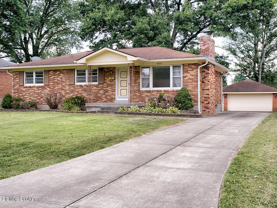 This all brick Ranch home in the Bittersweet neighborhood offers 3 bedrooms, 1.5 baths, a partially finished basement with family room, fireplace and bar, and a flat fenced backyard with detached two car block garage with gas heat. Spacious eat-in kitchen with appliances to remain. Primary bedroom features a private half bath. Possible hardwood flooring under carpeting on first floor. Cedar lined closet in the basement. This home is ready for immediate occupancy.