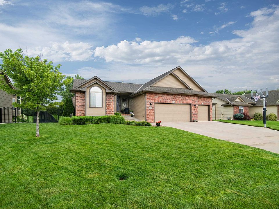 Welcome Home to this impeccable 6 BR 3 BA 3 Car Garage Ranch home in desired Avalon Park Community! With almost 3,000 finished sq ft close to Maize South schools, this custom-built home is truly move-in ready! You are greeted by a beautifully manicured lawn and landscaping, creating excellent curb appeal. The open concept living space features hickory hardwood floors, vaulted ceilings, white trim and large windows allowing in lots of natural light. Custom made oak interior doors are found throughout the home. The chef in the family will be right at home in the large kitchen outfitted with tile backsplash, peninsula with eating bar, walk in pantry, abundance of cabinetry and counter space, and it’s open to the dining area. All stainless appliances stay. The large primary bedroom comes with a coffered ceiling. Corner garden tub, double sinks, tile surround and floors, walk-in closet complete the Master Bath. Two additional bedrooms, nice hall bath and laundry room round out the main level. Make your way to the finished view-out/ walk-out basement with newer engineered hardwood floors in the family room with gas fireplace and large wet bar sporting lots of built-ins. Plenty of space for guests and family in the 3 additional bedrooms and 3rd Full Bath here too. Patio sliders take you from the family room to the big patio in the gorgeous backyard with deck, wrought iron fencing, mature trees, professional landscaping, irrigation well & sprinkler system, 12x12 ft storage shed. Oversized heated & cooled 3-car garage. Fresh interior paint, newer water heater. Neighborhood amenities include swimming pool, playground, lakes, walking paths, nature trail. There are so many extras in this exquisite home, you have to see it to take them all in. There is absolutely nothing your family would need to do but move in. You don’t want to miss out on this one!! -- Call to schedule your private showing today!
