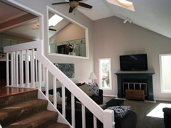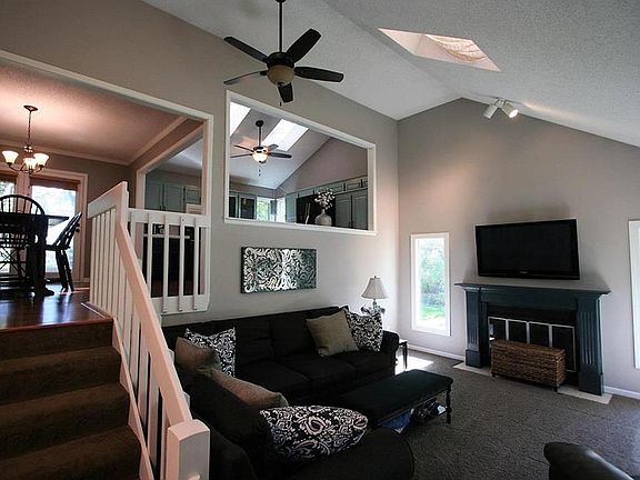 DARLING HOME FEELS RIGHT FROM THE MOMENT YOU ENTER! OPEN PLAN WITH SOARING CEILINGS AND BRIGHT SKYLIGHTS! BEAUTIFUL WOOD KITCHEN & HALL FLOORING. STYLISH CABINETS,STAINLESS SINK & FAUCET, & ALL OF TODAY'S COLORS,DECOR & WINDOW TREATMENTS. UPDATED FIXTURES & CEILING FANS THRU-OUT. NEW BLACK STAINLESS RANGE.BATHS UPDATED W/TILED SHOWERS & FLOORS. NEW THERMAL WINDOWS! NEWER COMP ROOF & HWH.FINISHED WALK-OUT LL OFFERS LG REC ROOM,TRUE 4th BR & FULL BATH.BREAKFAST ROOM w/WO TO DECK OVERLOOKING PRIVATE FENCED,TREED LOT.