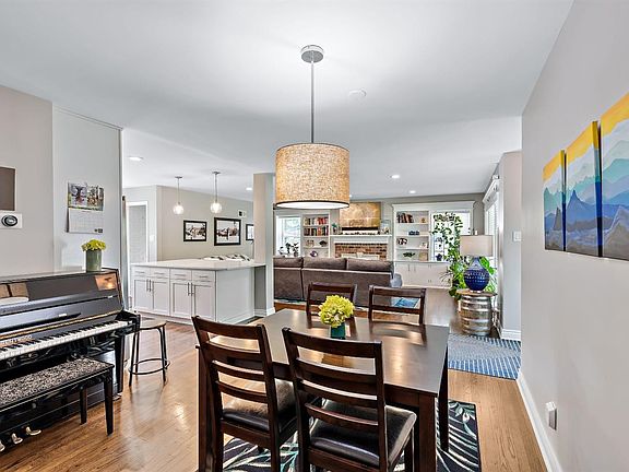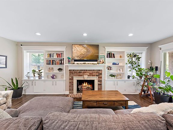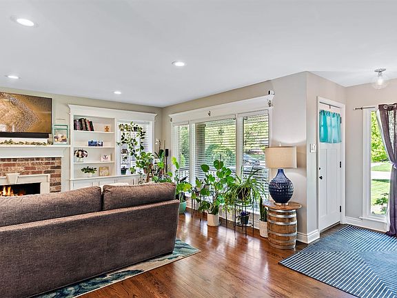In the desirable Wicker Park Estates you will find this updated (2020) all brick ranch home which provides comfort and elegance. The open concept living area has beautiful hardwood flooring, built-in shelving, gas fireplace (updated 2020) and dining area for your gatherings. The stylish kitchen provides functionality, sleek quartz countertops and island, soft-close cabinetry and stainless steel appliances included. The primary ensuite has a three quarter bath, two spacious closets and ample space to accommodate any sized bed and additional furniture. The two additional bedrooms also have spacious layouts and closet space. In the finished basement you'll find the generously sized recreation room, walk-in wine cellar, a possible 4th bedroom (no egress) or office as it has a built-in desk. The laundry room and utility room are unfinished, for your personalizing. Completing this home is the all brick garage, fenced in yard, concrete patio and garden. Commuter friendly!