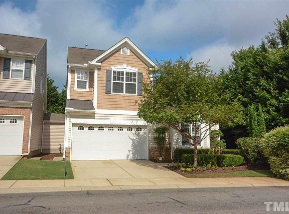 Desirable NW Raleigh subd. Private end unit with first floor MB. Open kitchen/dining room w/tile floors. High ceilings. Many upgrades carefully selected, New GE SS appliances, light fixtures, ceiling fans, plumbing fixtures, new flooring thru out first floor. Master w/large walk in closet, dual sinks, garden tub, separate shower. built in desk. 2 car garage, Screen-in patio & comm. pool. Lots of storage. Only minutes to RDU, shopping and entertaining. Relax on your weekends, no exterior work needed.