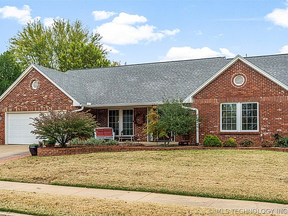 WELL MAINTAINED and nicely updated ONE-LEVEL home including newer kitchen by Jeff Pence of 180 Kitchen Design Group, newer hall bath, new paint, new fixtures, some new carpet. Spacious vaulted living with fireplace is open to beautiful custom kitchen with large granite work island/eating area. Includes cooktop, oven, M/W, dishwasher, refrigerator and washer/dryer. Eating nook with custom built-in hutch. Formal dining or office. Split bedroom plan. Private master suite has bath with dual vanities, separate shower, jacuzzi tub, and 3 closets. Andersen windows. Lennox heat/air 2015. TornadoSafe shelter. Gardener’s paradise with rear patio overlooking water feature, flower beds, and unique flowering small trees and shrubs. Within neighborhood is Quail Creek Park with tennis court, picnic tables, and playground. Excellent location near Bixby’s restaurant/shopping corridor and LifeTime Fitness. This is one of those homes you don’t often encounter, one that’s been lovingly cared for and exceptionally well maintained for past 30 years!! NOT TO BE MISSED!!