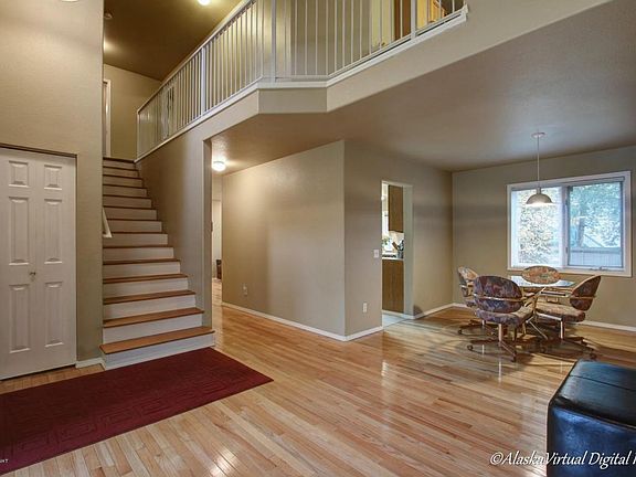 Well-maintained home in South Anchorage.Great living area with vaulted ceilings,wood floors,tile fireplace & bay windows!Kitchen with breakfast bar,pantry,dining area & formal dining.Perfect for lots of guests!Loft/office area.Master bedroom with private bath,jetted tub & separate shower,mirror door,walk in closet.Large fenced backyard,deck,shed & RV parking.Don't miss out on this beautiful home. Fence had a gate for toys. Large garage with lots of storage.