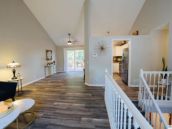 - Features: Wall/Wall Carpeting, Vinyl Floor, Window Covering, Cath./Vaulted Ceiling