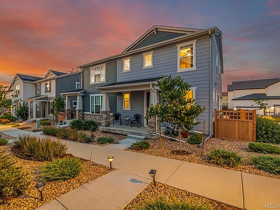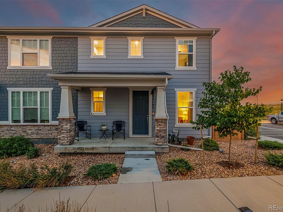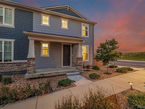 Step into refined living at this impeccable two-story duplex, adorned with enchanting stone accents, and graced with a convenient 2-car garage. Nestled on a coveted corner lot, the residence extends a gracious welcome through its inviting porch, an oasis of tranquility, perfect for indulging in morning coffee or unwinding while enjoying the exquisite west-facing Mountain views. The turnkey interiors unveil a haven of comfort, where a cozy formal living room beckons with its plush carpeting, lofty ceilings, and a neutral palette that harmonizes seamlessly with the exquisite modern plank flooring. An open expanse bathed in natural light unfolds before you, embellished with striking light fixtures and an elegant ceiling fan, while sliding glass doors gracefully beckon to the charming side yard. At the heart of this home resides the culinary masterpiece – a sanctuary for both the culinary enthusiast and the consummate entertainer. Gourmet aspirations come alive with top-tier stainless steel appliances, gleaming opulent quartz countertops, and a distinctive tile backsplash that dances in harmony with the crown-moulded white shaker cabinetry. The grandeur extends with a walk-in pantry, a central island crowned with a breakfast bar, and recessed lighting, culminating in a space that seamlessly marries functionality and aesthetics. Ascend to the upper level, where the main retreat unfolds in grandeur. An expansive haven encompasses a sitting room, plush carpeting underfoot, an indulgent walk-in closet, and an ensuite sanctuary featuring dual sinks. Greet each day with a breathtaking mountain view, embracing the outside world from the comfort of your private sanctuary. The canvas of potential awaits in the unfinished basement, an open invitation for tailored customization – an entertainment haven, a fitness sanctuary, an additional bathroom with existing rough-ins, or even adding bedrooms. Seize this golden opportunity to claim a realm of bespoke luxury as your very own.