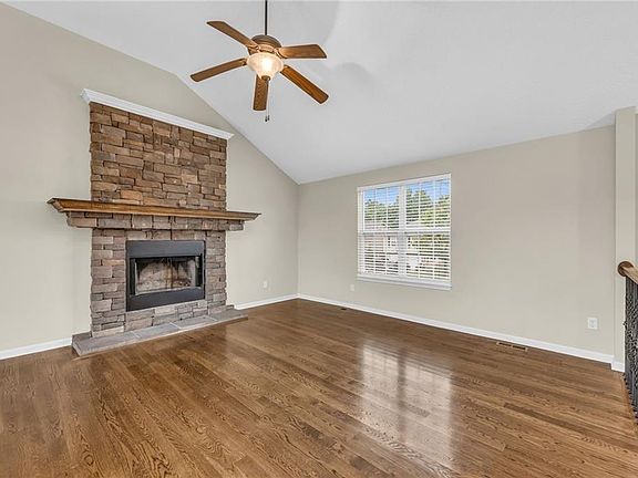 Marvel at the stone fireplace that steals the show in the living area, reaching for the vaulted ceilings like it's aiming for the stars. And those hardwood floors? They're not just for show – they're the foundation of comfort and style throughout the main level.