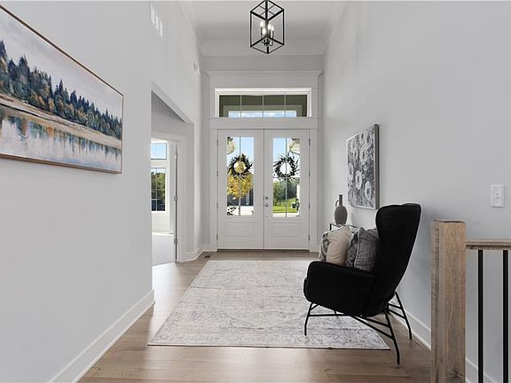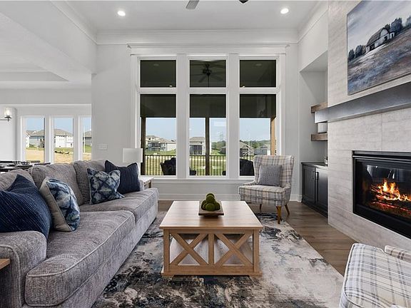 The Franklin Reverse 1.5 story by Patriot Homes, Inc is well-loved for its abundance of character and is move in ready. Past the farmhouse elevation and through the double front doors, enter a light-filled foyer: 14-foot ceiling, transom windows, and dazzling chandelier. White oak hardwood flooring extends from the entry to the living area. The heart of this home: the open great room & kitchen, provides a welcoming space for friends & family or just settle in & binge watch your favorite shows. Classic design elements in the great room include a floor-to-ceiling stone fireplace, built-in cabinets, and large windows overlooking a 12'x16' covered deck. The kitchen is well-equipped with custom shaker style cabinets, gas cooktop, granite counters, wall oven and microwave, walk-in pantry, an expansive island & large breakfast nook. A private entrance off the great room leads to the master bedroom complete with tray ceiling, custom-built feature wall & glass door onto the covered deck. The master bathroom boasts a free-standing tub & expanded shower w/dual showerhead, transom lighting, and built-in Bluetooth audio system. The spacious walk-in closet features 3-season storage & direct laundry room access. A secondary bedroom with ensuite bathroom rounds out the main level. An open staircase leads to the finished lower level complete with a recreation room, wet bar, two additional bedrooms, full bathroom, unfinished storage space, and walkout access to a covered patio. Extras enhancing the overall convenience and ease of the Franklin include irrigation system, 3-car garage with openers for both doors, high-efficiency furnace, whole house humidifier, and 50-gallon water heater. *Taxes and room sizes are estimated.