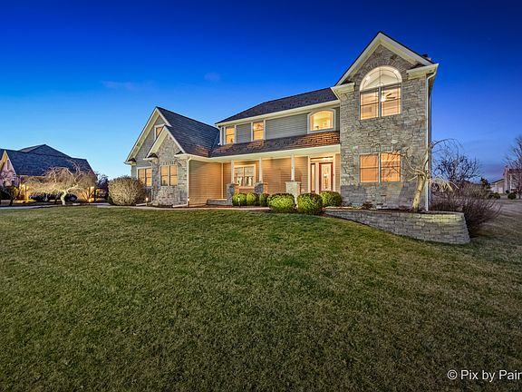 Absolutely stunning from top to bottom! This custom two-story residence in Spring Grove boasts an inviting open layout, seamlessly connecting the living room, dining area, and kitchen adorned with stainless steel appliances, granite countertops, and a sleek tile backsplash. The main floor features a coveted office accessed through elegant French doors, and a spacious laundry room with in-floor heating conveniently situated near the heated three-car garage. The backyard is an ideal entertaining space, showcasing professional landscaping and a large new patio. Ascending to the upper level, discover a spacious recreation room situated above the garage, a full bath, and four bedrooms, including the master suite complete with a walk-in closet and a luxurious bath featuring in-floor heating, a double sink vanity, a separate shower, and a jetted tub. The full English basement adds to the allure with its light-filled family room equipped with built-in cabinetry, a media area, an additional bath, and a generously sized bonus room. There's so much to admire in this home, making it an absolute pleasure to tour!