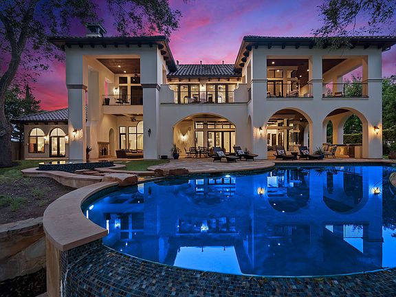 Spanning 136 feet of exquisite and coveted Lake Austin waterfront, this classic yet contemporary estate is what dreams are made of! Located on over an acre of flat land, at the end of a private street, this estate becomes your own private resort. With over 4,000s/f of outdoor living space, this floorplan was designed to showcase the fabulous views of Lake Austin from almost every room in the home. The contemporary Santa Barbara style estate exhibits a gorgeously manicured lush lawn that slopes gently down to the water's edge and boat dock. Surrounded by arch-framed flagstone terraces that line the back of the home, there are ample opportunities for family dinners, entertaining or just sitting quietly at the end of the day. A large, tiered pool and spa. and towering pecan trees lead you to the serene water's edge. Guests can pause at the walk-in bar in the formal living room before proceeding out the French doors to the shady terrace to enjoy the greenery and water beyond. The interior of the estate reflects a contemporary take on the classic Santa Barbara style, featuring stone floors, arched entryways and handcrafted-iron accents including a spectacular scrolled-iron entry door. Coffered ceilings and a limestone fireplace add a sense of formality to the main living and dining rooms, while rough-hewn beams add a rustic touch to the less-formal rooms. Granite and dark burnished cabinets grace the extra-large kitchen which is also outfitted with professional-grade appliances. A luxurious master bedroom has its own private patio overlooking the lake and hosts a spa-like bathroom with two master closets. A secondary guest bedroom also resides on the main level. The second floor features a large game room with a second bar, three en-suite bedrooms and a large study with it's own private balcony. With Lake Austin waterfront properties few and far between, you will sacrifice absolutely nothing in creating you and your family's next chapter at The Tranquility House! Welcome to your own private oasis!