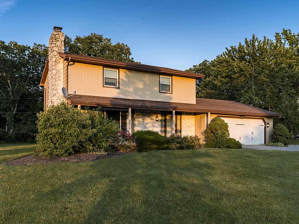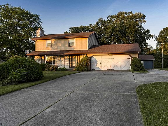 Spacious 4 bedroom/3.5 bath home on a finished basement in beautiful Manor Park! Need a second garage for space to work or extra parking? This home has it! Whole-house generator in case the power goes out? Has that, too! This two-story home sits on a half acre lot and is ready for its new owner. Main level features a spacious living room with large picture window overlooking the covered front porch as well as a gorgeous whitewashed stone gas log fireplace. Living room opens up into the dining room with windows on each side, allowing plenty of natural light into the main level. Kitchen offers plenty of cabinet space with window above the sink overlooking the backyard, and flows over into the eat-in area which has large sliding doors that lead onto the back patio. Laundry is conveniently located off the garage along with a full bath, complete with standup shower. Upstairs you'll find three good-sized bedrooms, second full bath and the master bedroom, which has it's own bath and a wall's length of closet space. Finished lower level boasts finished concrete floors, second gas log fireplace with beautiful brick up to the ceiling, massive wet bar and third full bath with custom shelving and shower. Enjoy the backyard space with plenty of room for play and entertainment and the privacy offered by the woods behind you. Second detached garage has plenty of workbench space, shelving and storage! Whole-house generator runs on gas. Both fireplaces have been converted from wood-burning to gas log.