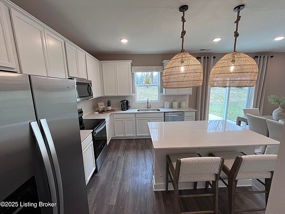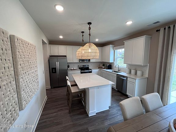 This stunning home offers a lifestyle of luxury and convenience. Step inside to 9ft ceilings illuminated by soaring LED lights, Quartz Countertops, built in fireplace and a Subway Tile Backsplash. The Premium Modern Cabinets with Crown Molding and Full Luxury Vinyl Plank flooring add a touch of sophistication throughout. The open concept design is perfect for entertaining, making gatherings a breeze. Upstairs, a spacious loft awaits, ideal for a kids' retreat. With 4 bedrooms thoughtfully spaced for privacy. The primary suite boasts a walk-in closet fit for the most expansive wardrobe. The primary bathroom is a spa-like retreat with a tiled shower, premium comfort height cabinets, quartz countertops, and a dual vanity. Nestled in a quiet neighborhood, yet just minutes from Bardstown Road!