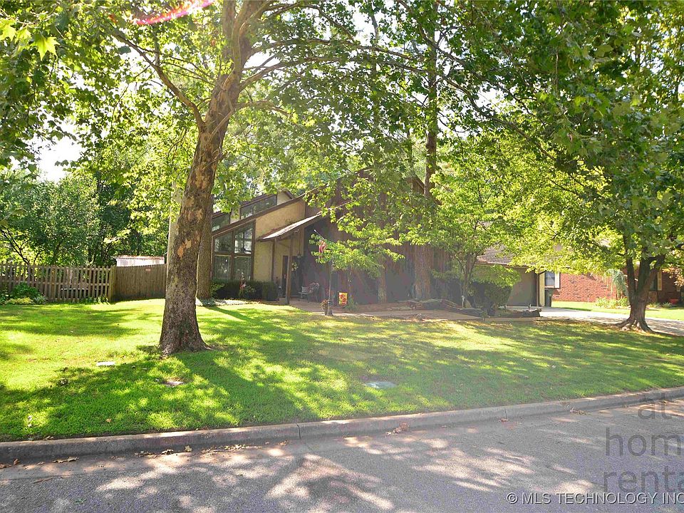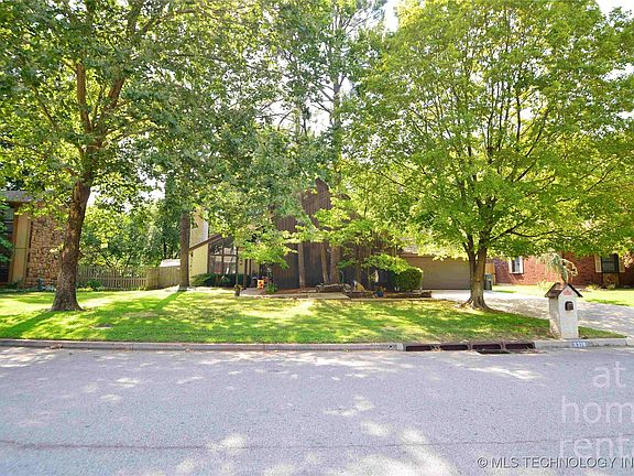 Wonderful South Tulsa Home Available Soon in Forest Creek! Make plans now to move-in by late June/early July! This spacious home is surrounded by trees and greenery, giving it a wonderful cabin feel in the city. Step inside to this contemporary custom floor plan that is anything but a standard cookie-cutter home! The 2-story vaulted ceiling great room off entry boasts gorgeous flooring plus a stately fireplace, and is open to the dining/flex area with walls of windows just a half flight of stairs above. Walk a half flight of stairs down from the living area to the game-room, with a corner wet-bar area perfect for popcorn, drinks and snacks on movie night! Kitchen features bright-white cabinetry, sleek black appliances and granite countertops. Two Ovens & Fridge included! From the breakfast area, walk out to your covered deck area with pull down shades for year-round enjoyment. Spacious laundry room, two guest rooms and hallway bath also on main level. Primary suite with huge walk-in closet and luxury bath upstairs, features a loft sitting area with sliding door to upstairs deck overlooking park-like backyard. Pet negotiable with approval, additional deposit, and possible monthly pet rent. Privacy fenced, exterior storage building, irrigation system, and great landscaping all around make this a true gem of a home that you MUST SEE!
