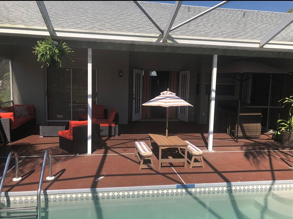 Enjoy living the Florida lifestyle in beautiful 3 bedroom home in Orchid Lake Village Unit 10 HOA located in close proximity to shopping, and schools. Less than 10 miles from state park and beaches. Large open living room off entry with vaulted ceiling.. Tiled area flows into family room with rich looking wood laminate floors and exit to patio. New neutral 2 tone paint throughout. Kitchen show cases breakfast bar, and tons of cabinet and counter space. Master bedroom offers vaulted ceiling, wood look vinyl floors, exit to patio, and large en-suite bathroom including dual sinks, corner shower, Covered patio off rear exit overlooks screened in pool. Perfect spot to relax and entertain. A must see!! Owner pays for weekly pool service, trash pick up and weekly lawn mowing service. Renter responsible for gas and electric bill. 1st and last months rent and security deposit due at signing. No smoking allowed.