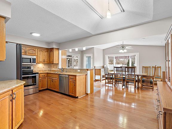 *This home is sure to impress!!*Amazingly well maintained inside & out!*Private fenced back yard w/awesome newer maintenance free deck, custom trellis, bench & large patio*OPEN FLOOR PLAN*Beautiful large Kitchen w/HW floors, granite countertops, breakfast bar, SS appliances, tile backsplash, solar tube/lighting & w-i pantry*Kitchen is open to large Dining Room w/bay window & Living Room*Vaulted Ceilings w/skylight & recessed lighting*Main Floor Primary/Owners bedroom*Updated main floor Full bath has tile floors & tub w/tile surround*3 bedrooms total*Additional 3/4 bath lower level*Family Room in lower level w/wood burning fireplace*Several Updates: NEW Furnace, A/C & Aprilaire (2022), NEW Water Heater (2024), NEW Fiberglass front door, vinyl siding gutters w/leaf guard*LL laundry w/utility sink*2 car attached garage w/NEW floor*Sprinkler System*Nice Storage Shed w/additional storage in LL*Conveniently located to shopping, restaurants, parks, walking trails & easy access to HWY 169*