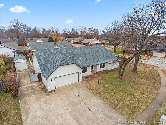 Bixby North Elementary. NEW PAINT INSIDE & OUT, GATED RV PARKING PAD, SHELVED STORAGE SHED, SUN ROOM, COVERED PATIO, & NEW POOL LINER READY FOR SUMMER FUN!!! Experience life with style in this 3-bedroom, 2.5-bath residence boasting an inground pool, sunroom with pool views, and a covered patio for leisurely afternoons. Revel in a vaulted living room, formal dining, and a modern kitchen equipped with granite countertops, a pantry, and ample storage. Additional highlights include an expansive corner lot, large yard, adjacent extra space off the kitchen, and a backyard shed. Nestled in a sought-after neighborhood near Quail Creek Park's tennis courts and playground, and just moments from Bixby’s bustling restaurant, shopping, and entertainment corridor. Secure this blend of comfort and convenience today! Agent has ownership interest.