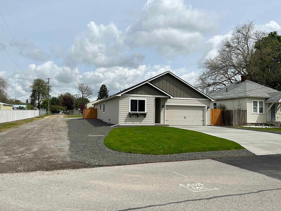 Beautiful New Construction in Spokane Valley has three bedrooms, two bathrooms, and a two-car garage. There’s an entry from your garage into the tidy laundry room with ample storage. Primary Suite has a spacious bedroom, a full bath, and a generous walk-in closet. Gas forced air, central air conditioning, and a tankless water heater. Your kitchen has top-of-the-line finishes, including Granite Countertops and a Samsung Appliances package. Vaulted ceilings adorn the great room, leading to the covered back porch. Installed sprinkler system covers the lush grass sod in the front yard. Outback is fenced and plumbed for sprinklers.