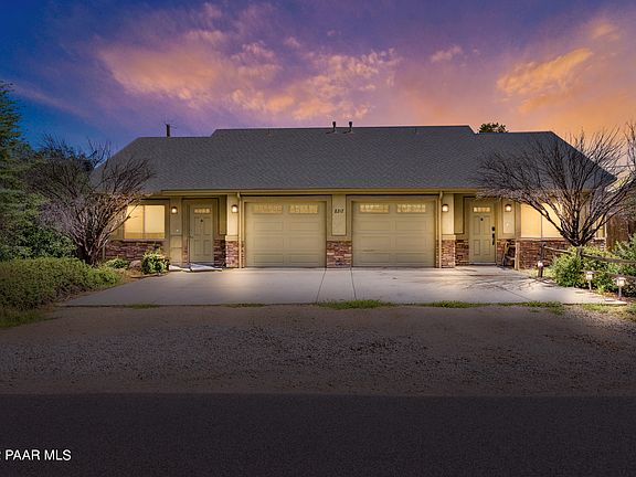 Amazing duplex with a great center location to all the Prescott Valley has to offer. Rare duplex that feels more like a home with a large open great room, an open floor plan, large kitchen with custom cabinets and tons of storage, interior laundry room with cabinets, walk-in closets in both bedrooms, two sliding glass doors, display shelves, and vaulted ceilings. Each unit is identical with 2 bedrooms and 2 baths. Fenced rear yard. New carpet in Unit A. New exterior paint in the last 3 years. Brand New roof and 2 brand new HVAC units being installed next week. Property has been well maintained and is in excellent condition. Both units have quality tenants. Seller is a licensed real estate agent.