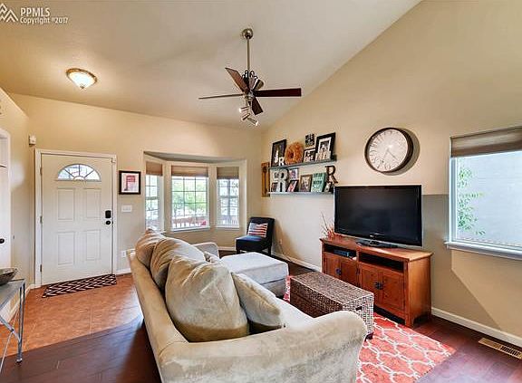 Move in ready rancher in the popular neighborhood at The Glen at Widefield. The beautiful wood floors and vaulted ceilings are part of the open floor plan that welcomes you into the great room and through to the spacious eat-in kitchen with bay window and counter bar. Recently added Gazebo and freshly mulched yard will be perfect during the fall months. The spacious master has adjoining bath and large walk-in closet. The finished basement has a huge family room, two additional bedrooms, and full bath. Just minutes away from military bases, Powers and I-25, this rancher won't last long!!