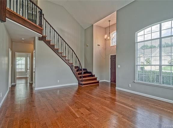 Beautiful 4 bedroom home with master on the main level. Sweeping, custom mahogany/oak staircase, lots of wood floors and tons of natural light. Gorgeous kitchen with custom cabinets, island, granite and SS appliances. Three bedrooms and a full bath upstairs. Amazing Location! Close to 485, I-77 and Northlake Mall, and across the street from pool, playground and tennis courts!
