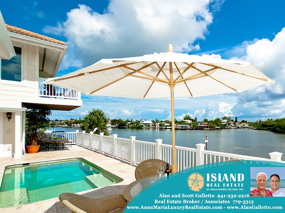 Here is that gorgeous WATERFRONT home you have been waiting for! Located on Anna Maria Island and situated directly on Bimini Bay, this fabulous 3 story waterfront home has sweeping water views with easy boat access to the Gulf. With almost 4000' under air, this home is perfect for comfortable living and easy entertaining with an open floor plan on the main level, ensuite bedrooms spanning each of the three floors and a lower level that includes a large game room with wet bar, a movie room, a bedroom and full bathroom. You'll enjoy all the appeal of the main level (2nd floor) including a stylish kitchen with GE Profile appliances and custom exhaust hood and you'll definitely appreciate the dumbwaiter that carries everything from the garage directly to the kitchen (customized installation "hides" the dumbwaiter behind existing cabinetry). The comfy living room draws you to the beautiful water view with an entire wall of hurricane-proof sliders that "disappear" into the exterior wall giving way to the cocktail pool (heated "lap" pool) and travertine deck that runs the full length of the house. Everyone will enjoy watching the boats go by as they get comfortable in any of the perfectly placed seating and lounging areas of new furniture. Also on the main level you'll find 2 lovely ensuite bedrooms, a spacious office/den, charming half bath and adorable mini laundry room outfitted with new Maytag Commercial Drive washer/dryer appliances. The master suite encompasses all of the 3rd floor with a stunning West Indies style including dark beams, Robb & Stuckey furniture (check out the beautiful 4 poster King bed) and plantation shutters. In that master bedroom, you'll adore making your first cup in the morning at your very own coffee bar before walking out onto your private balcony to sit and catch the beautiful sunrise or get a birds eye view of manatees and dolphins as they swim and play right below you in front of the new boat dock and lift (10,000#). The master bath square footage is equally as large as the master bedroom complete with a large soaking tub, HUGE walk in shower, lots of cabinets and storage along with a perfectly sized make up vanity counter. The home has been well maintained and lovingly kept as a second home. It has never been rented and is pet and smoke free. Homes on Bimini Bay are rare to the market and you'll love this one with far too many features to completely list but include impact sliders and windows, new landscaping, central vac, plantation shutters on windows and doors, wood flooring, ceiling beams, tongue and groove ceilings, crown molding, wood fans, ship lap walls and travertine floors. Furnishings, art and accessories from Matter Brothers, the Pamarro Shop, The Egret's Landing, Restless Natives, Robb & Stuckey and special little shops visited while traveling. Light and bright interior is the result of many improvements to each room IE. new quartz/granite counters in the kitchen and bathrooms along with all new lighting, new sinks, faucets, shower heads and cabinet hardware. Bedrooms have all new flooring, lighting and wood ceiling fans. This home is turnkey furnished and even includes kayaks, bikes, SUP board and garage appliances (freezer and separate fridge). With so many features and an interior that has been professionally imagined and beautifully styled, you will immediately feel at home!
