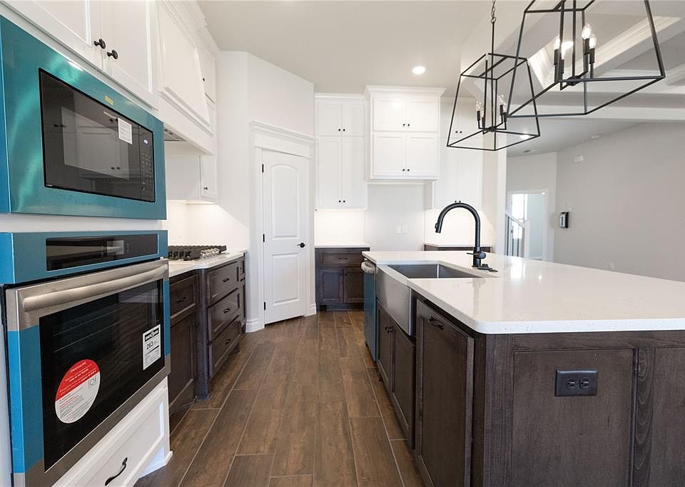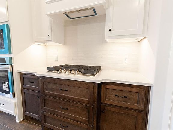 This Sage Bonus Room 2 floor plan features 2,550 Sq ft of total living space, which includes 2,300 Sq ft of indoor space and 250 Sq ft of outdoor living. There is also a 625 Sq Ft, three car garage with a storm shelter installed. This new build offers 4 bedrooms, 3 full baths, 2 covered patios, a large bonus room, and a sizeable utility room. The great room presents a noteworthy coffered ceiling with crown molding and a ceiling fan, 2 seven ft windows, wood-look tile, rocker switches throughout, and Cat6 wiring. The kitchen supports well-crafted cabinets to the ceiling, 3 CM countertops, stainless steel appliances, including a 5-burner cooktop, pendant lighting, a center island with a trash can pullout installed, modern tile backsplash, and a large corner pantry. The prime suite boasts a sloped ceiling detail with a ceiling fan, large windows, and carpeted flooring. The large prime bath features dual vanities, a European walk-in shower, a free-standing tub, a private water closet, and a huge walk-in closet with both vertical and horizontal storage. The covered outdoor living area is ready to entertain with the included wood-burning fireplace, gas line, and TV hookup. This new home also features a tankless water heater, a whole home air purification system, R-44 insulation, and so much more!