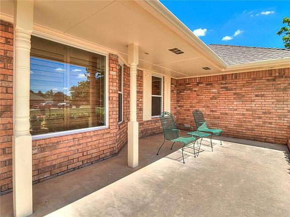 LOOK AT THE NEW PRICE! Enjoy the front porch for your morning coffee. True mother in law plan. Carpet installed in June 2017. Plenty of room for entertaining or a growing family including 2 living rooms and bonus patio room. Large laundry with storage galore. Attic has extensive flooring for additional storage. Close to shopping, restaurants, Kilpatrick Turnpike, Northwest Expressway, making it easy to get where you want to go. Northridge Elementary School is within walking distance and Cooper Middle School is very convenient for your young students. Storage building in back with patio and extra area to place another sitting area for your outdoor enjoyment. Seller has added home warranty through First American.
