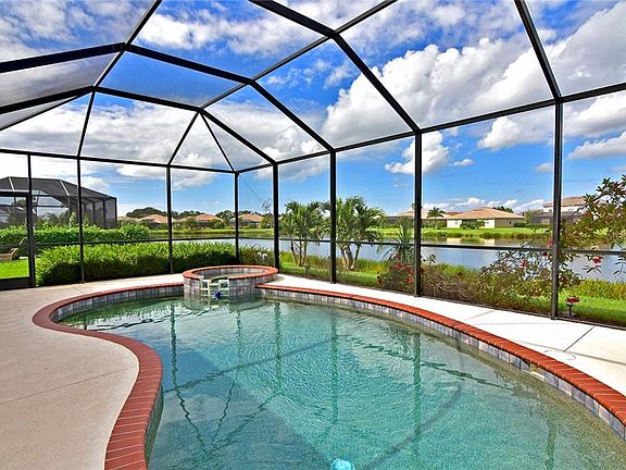ANNUAL UNFURNISHED RENTAL AVAILABLE NOW! Lakefront estate home with screened-in pool and spa located in the River Strand Golf & Country Club of Heritage Harbour. Entire inside of home was just painted, landscaping redone, and HVAC system/ducts cleaned. This open layout home has four bedrooms, three baths, large formal living and dining room, with 18-inch tile throughout the main living areas. The kitchen includes granite countertops, stainless steel appliances, abundant wood cabinets, and breakfast bar with views of the covered lanai, pool and gorgeous lake. The master suite is oversized, with sliding glass doors, large walk-in closet, and en-suite bath with soaking tub and separate shower. It also features a newly painted three-car garage. With only a $214 membership transfer fee, tenants can enjoy a golf membership to the 27-hole Arthur Hills-designed championship golf course, access to the tennis center with eight Har-Tru lighted tennis courts, pickleball court, basketball court, main pool with poolside bar and grill, sand "beach," resistance pool, 24-hour fitness center, and a Tuscan-inspired restaurant and bar for a casual lunch or gourmet dinner. Additionally, there is a new clubhouse, pool and even more amenities. Conveniently located one mile from I-75 for easy access to the sandy Gulf beaches of Anna Maria Island, Sarasota, St. Petersburg and Tampa. Pool and lawn maintenance are included in rent. Come and live the private Florida golf and country club lifestyle today.