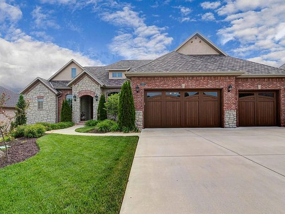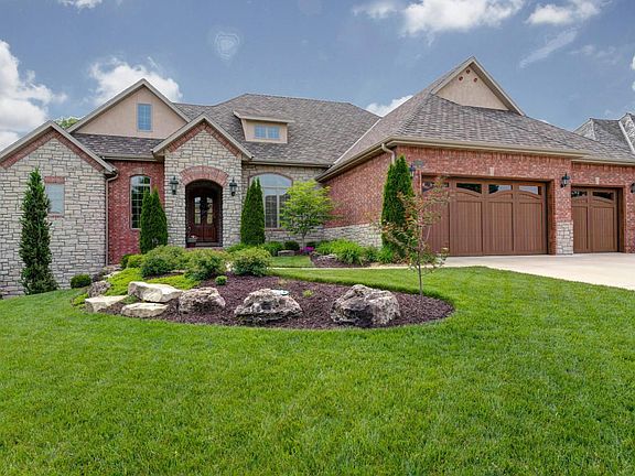 8317 Rolling Hills Dr., Nixa, MO. Custom built builder's personal home! This all brick 4 bedroom 4-1/2 bath finished walkout basement home features extensive attention to detail throughout. Customized wood molding and ceiling treatments, hardwood floors and granite accent the quality throughout. The lower level is showcased by high ceilings and open living areas, study, recreation room, family room with fireplace and large wet bar, plus two guest bedrooms. Gorgeous views of the golf course from both levels is also enhanced by the professionally landscaped yard. Truly a beautiful home!